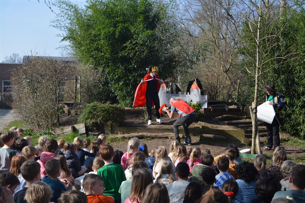 - Een prikkelende opening waarmee we het thema introduceren en de nieuwsgierigheid prikkelen (bijvoorbeeld met een toneelstuk).
